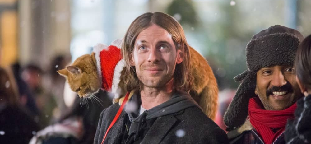 Street busker James (Luke Treadaway) finds himself at risk of having his beloved cat, Bob, taken from him as his financial situation worsens around Christmas.