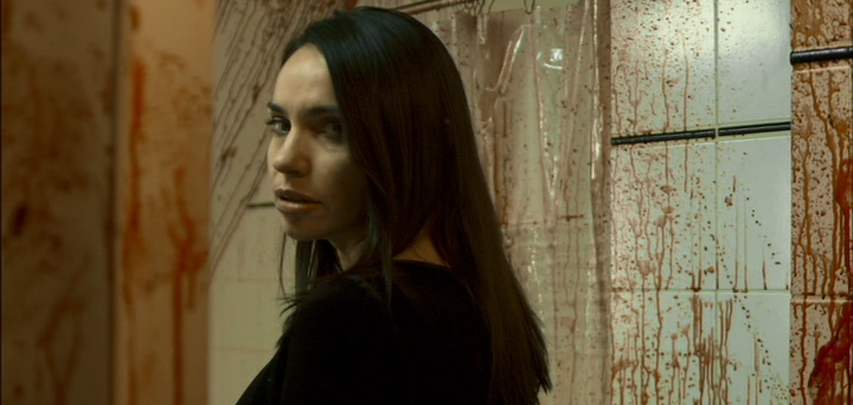 Alysson Paradis’ Sarah is hoping for a quiet, isolated Christmas. After losing her partner in a fatal car accident four months earlier she’s still grieving, while heavily pregnant with their now overdue child. Unfortunately the plans for a calm and almost ignored Christmas is shattered when a character simply called La femme (Béatrice Dalle) breaks into Sarah’s home in the middle of the night with the intent of stealing her baby. After waking up to her stomach attempted to be cut open the frightened protagonist finds herself fighting for not just her life but her unborn baby’s too as a merciless attacker attempts to slash through every door and obstacle in her way. All while Sarah desperately locks herself away in her bathroom, gasping for breath after the initial attacks.