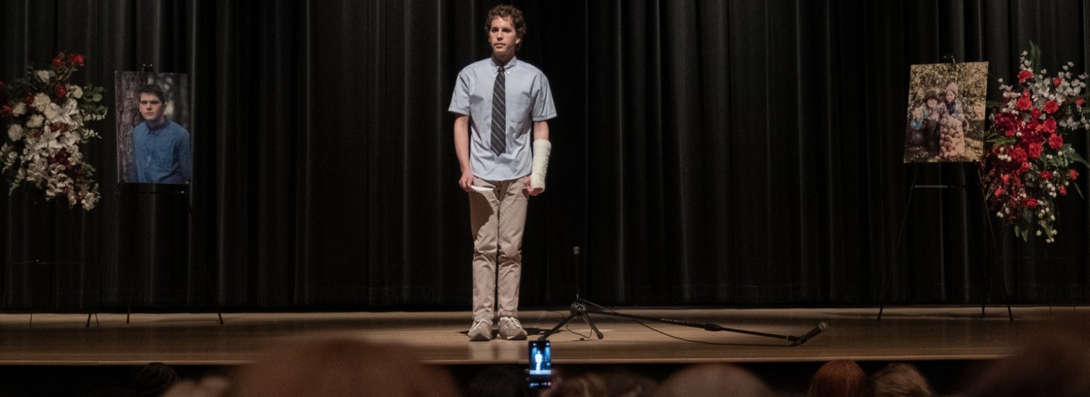 When another student takes his life, Evan Hansen (Ben Platt) finds himself forging a friendship to console the grieving family (Kaitlyn Dever, Amy Adams, Danny Pino) when Connor is found with one of Evan’s therapy letters to himself.