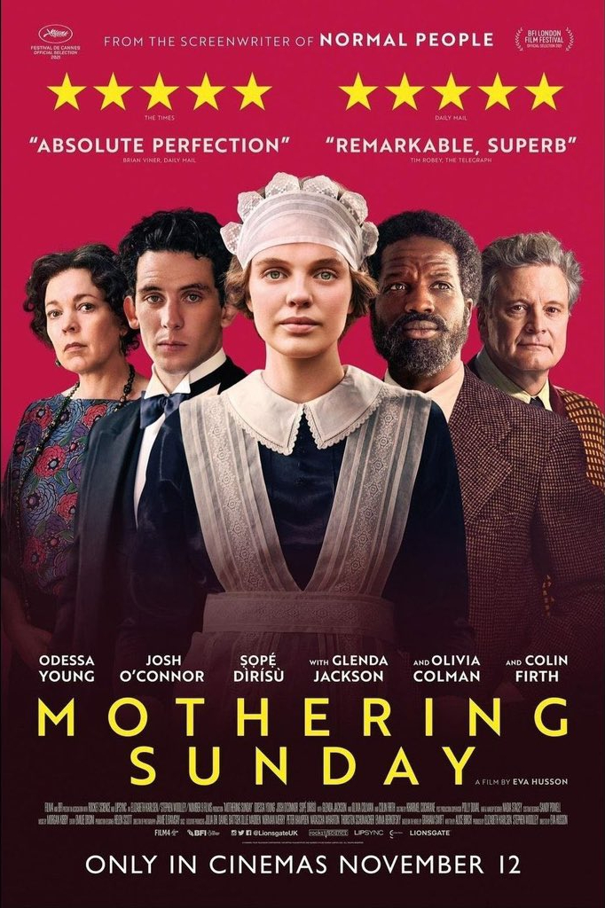 While her employers (Colin Firth, Olivia Colman) spend the day with, long-distant since World War One ended, friends to celebrate an engagement, maid Jane (Odessa Young) spends Mothering Sunday in an affair with future-groom Paul (Josh O’Connor).