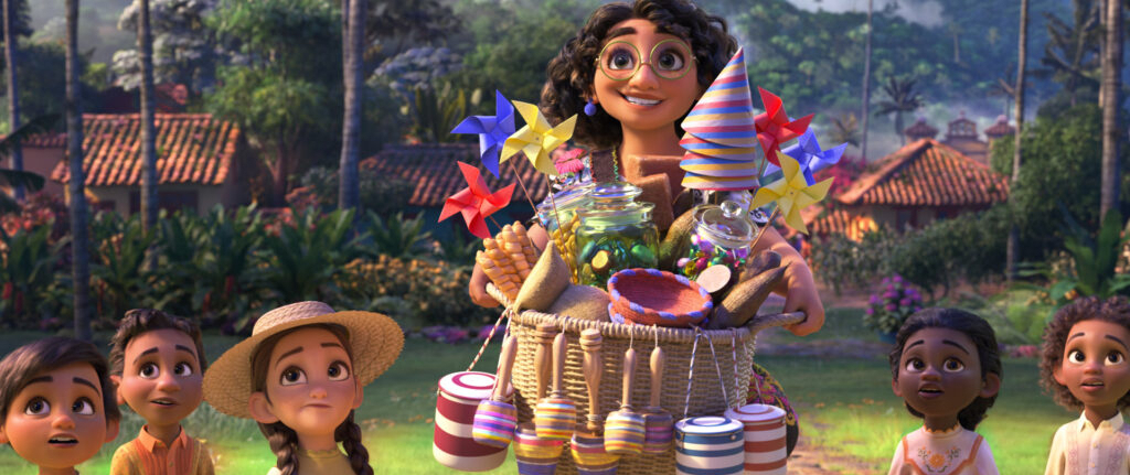 Looking back on their offerings over the last few years Walt Disney Animation Studios have truly dived into the spirit of adventure. The last five years have included titles Moana, Ralph Breaks The Internet, Frozen II and Raya And The Last Dragon. Now, in the same year as the latter they return with something somewhat more stripped back. While Encanto has been slightly pitched in its trailers as a travelling journey with plenty of action and thrills amongst the mysticism of the titular magic, however its exploration rarely leaves the boundaries of the living house in which central figure Mirabel (Stephanie Beatriz) and her family live in. The family Madrigal are perhaps the most respected people in the town which their house lies at the top of – and which they practically run and helped build. Each has their own special gift – whether that be strength or the ability to talk to animals – apart from Mirabel who appears as a slight dark sheep in the family.