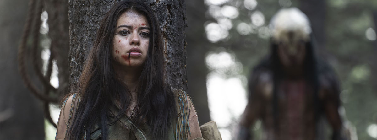 Following on from 2016’s 10 Cloverfield Lane director Dan Trachtenberg returns to bring another perspective spin to a franchise. The original 1987 Predator is a classic piece of tension building about being hunted and preventing the attacker from winning. For the first half of Prey – taking the story to 1719 and following Comanche hunter Naru (Amber Midthunder) – Trachtenberg, who came up with the story alongside screenwriter Patrick Aison, focuses on the central figure hunting for an unseen figure. She’s uncertain of what waits for her in the nearby wilderness, but knows for sure that the recent roar of a ‘thunderbird’ and strange attacks and sightings are of something unfamiliar. Perhaps a predator stronger than any she, or anyone in her tribe, has seen before. Attempting to track it down she takes it upon herself to take the being down before it attacks the rest of her tribe.