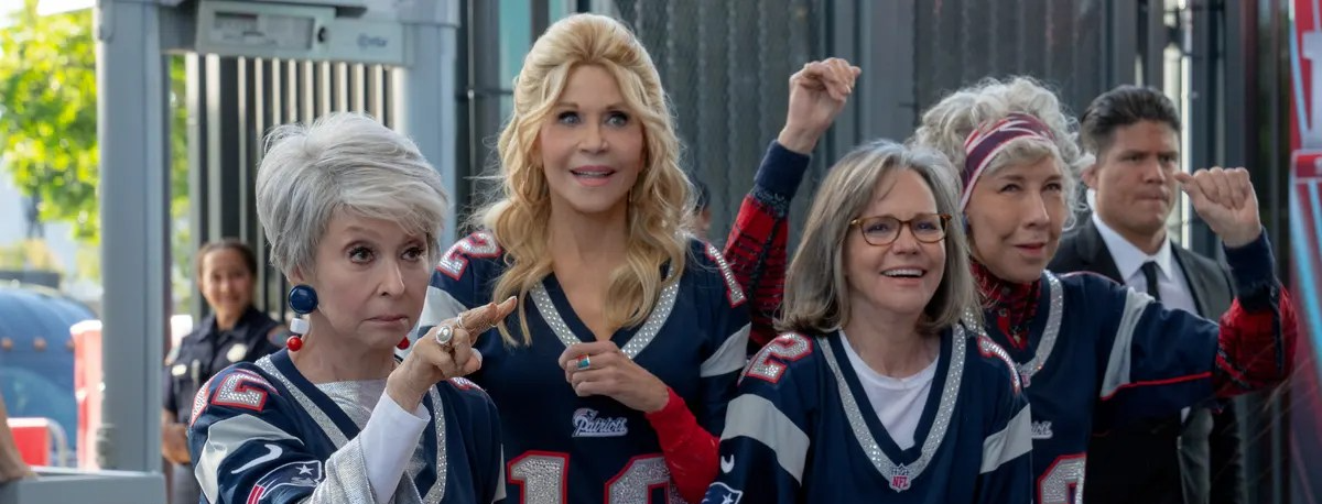 After 16 years of having watched from one of their homes best friends Lou (Lily Tomlin), Trish (Jane Fonda), Maura (Rita Moreno) and Betty (Sally Field) all decide to escape for a few days to the Super Bowl, to finally see their favourite player, Tom Brady (himself – also co-producer of the film), in person. Once arriving in Houston, Texas there’s no time to stop, the ensemble finds themselves making the most of the NFL experience and bumping into a number of famous faces along the way.
